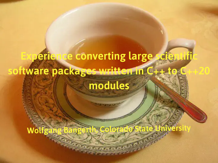 Wolfgang Bangerth will give a talk entitled “Experience converting large scientific software packages written in C++ to C++20 modules”