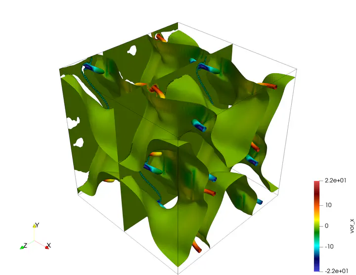 Multi-GPU support with MPI. We have started the integration of a prototype [2] into the Kokkos-FFT repository (see the thumbnail for the x component of vorticity plot from a distributed Taylor–Green vortex simulation).